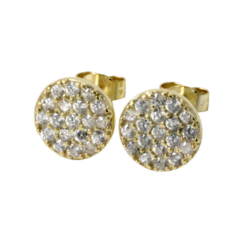 Round Disc Pave CZ Cluster Stud Earrings