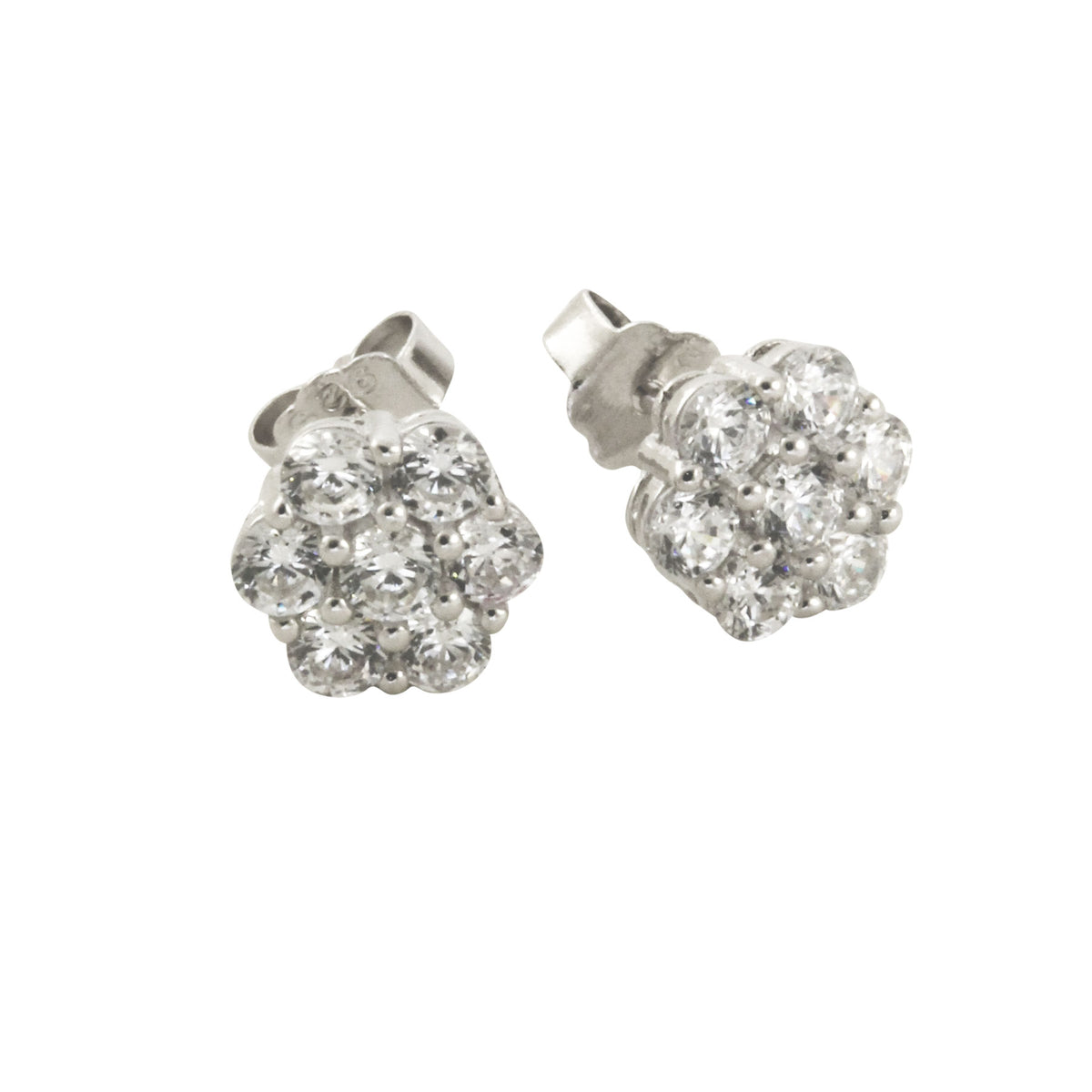 Sterling Daisy Flower Pave Cluster Stud Earrings