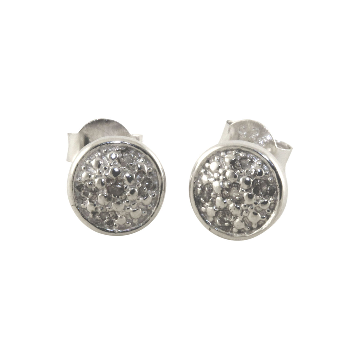 Sterling & Tiny Diamond Round Cluster-Style Earrings