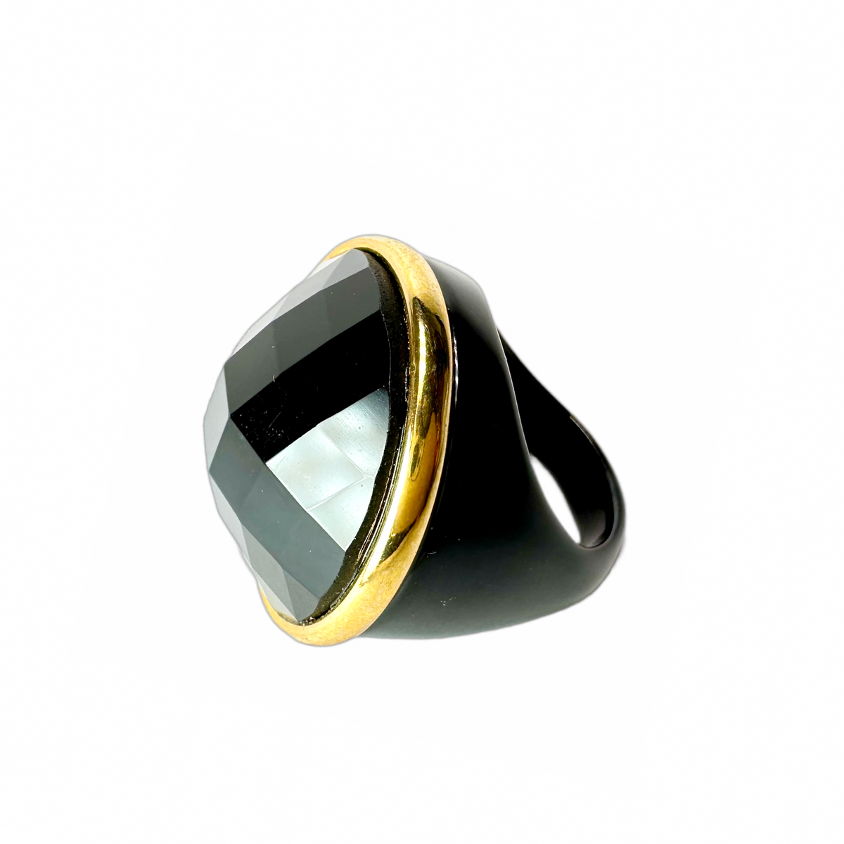 fashion jewelry, black resin ring with gold accents. Ring Sizing Guide