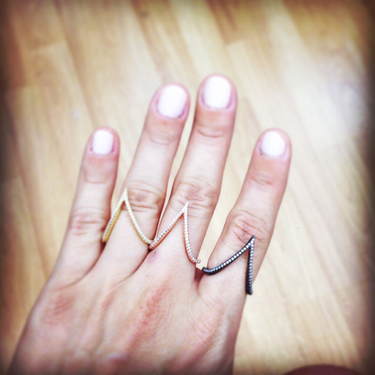 Rrrrr, Our black claw ring is incredibly glamorous and versatile. Made of .925 sterling silver, plated in black rhodium featuring shiny cubic zirconias. Deep V Ring makes for the perfect statement ring. Pair with other stacking ring for an effortlessly edgy appeal. Great as a cocktail ring or a date night glimmer!