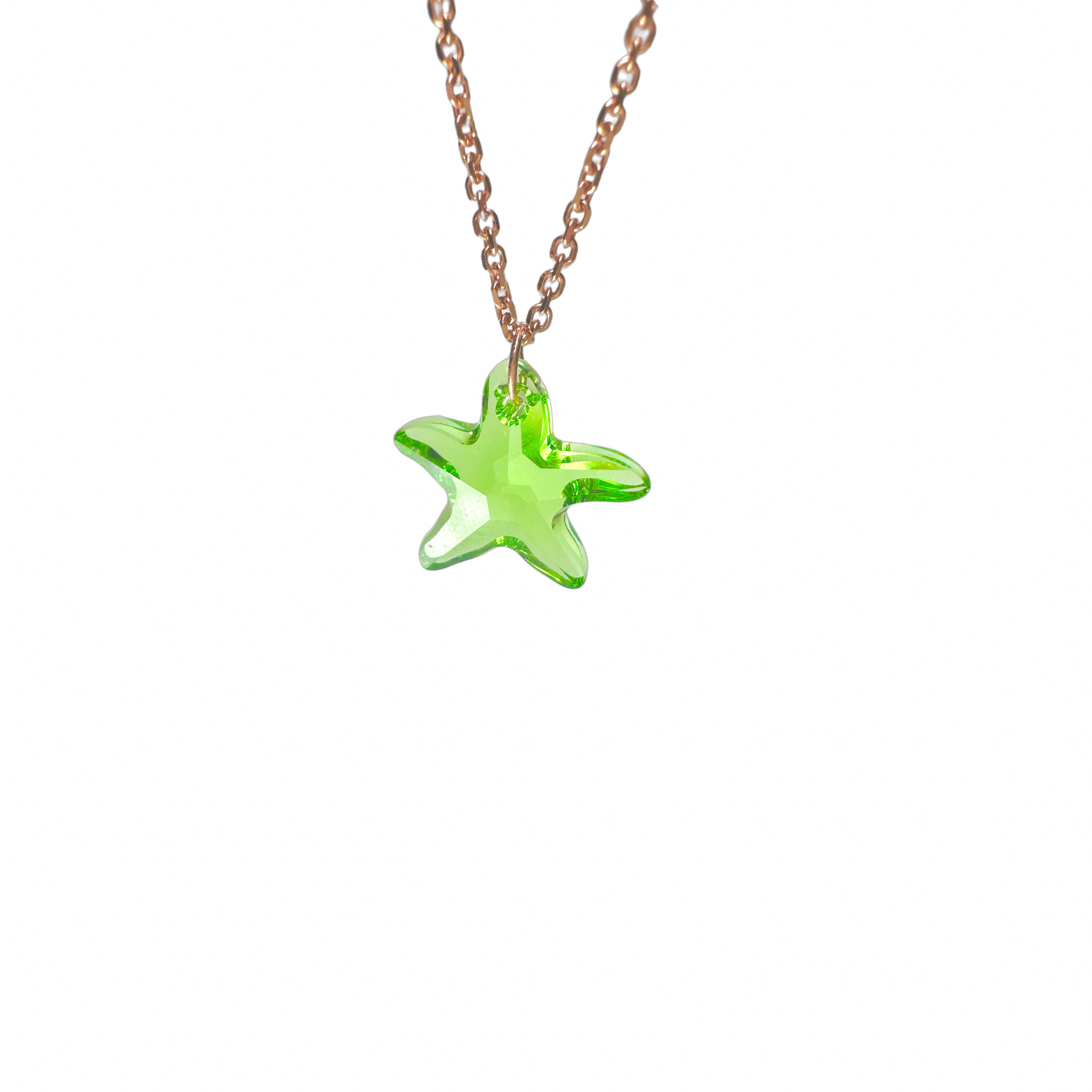 apop jewelry, created and made at apop, crystal pendant, Made with 14k loop and crystal starfish shaped charm. small size, great with other pendants, or cute alone. 14k jewelry at apop.