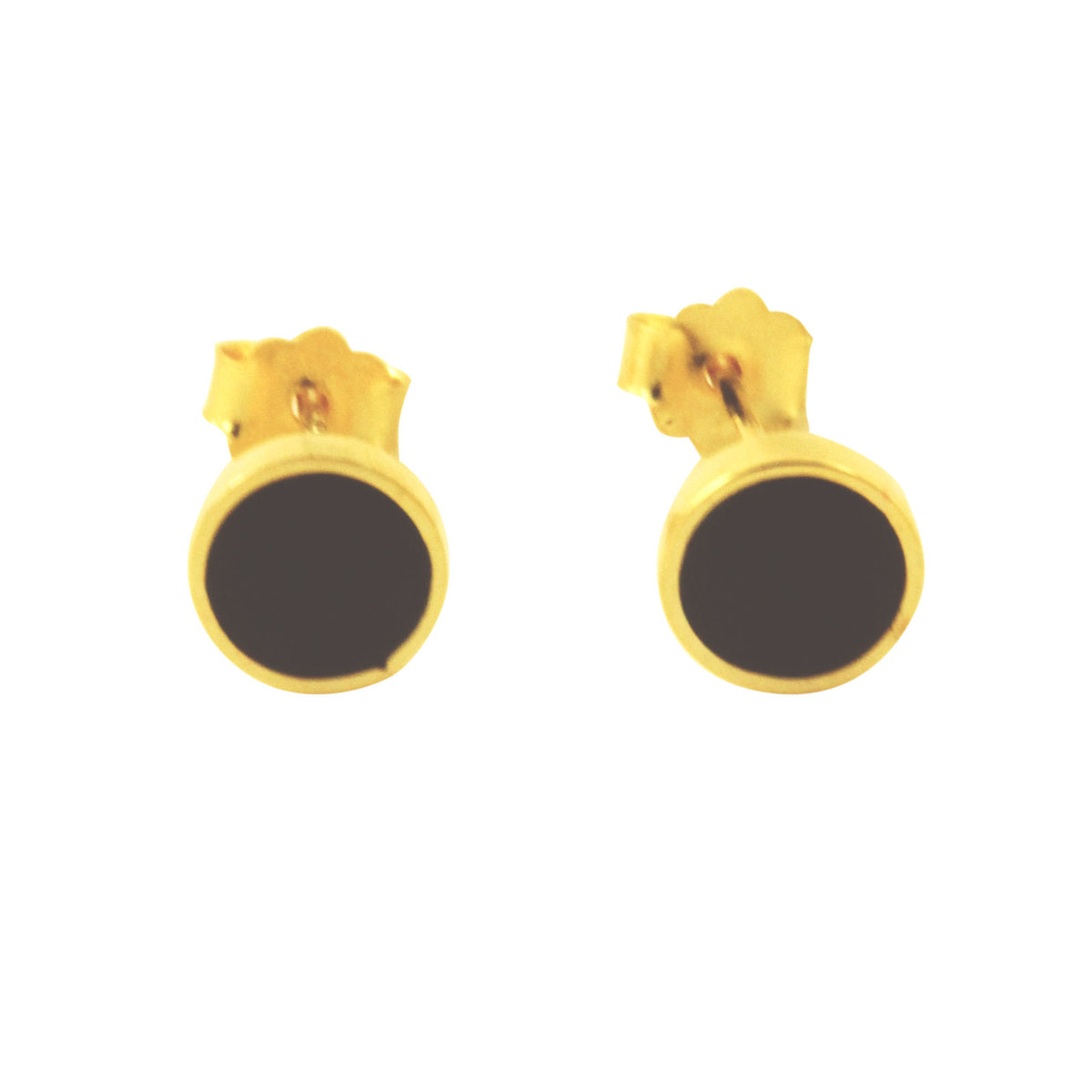 Black Enamel Bezel Stud Earrings Gold-Dipped