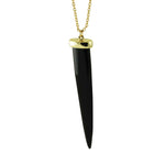 black spike necklace. made of simulated black onyx. From the office to cocktails, Gold-dipped chain features a black spike style pendant. Get Sassy with this ultra gold pyramid stud necklace. Made of .925 Polished finish. Layer or wear solo.