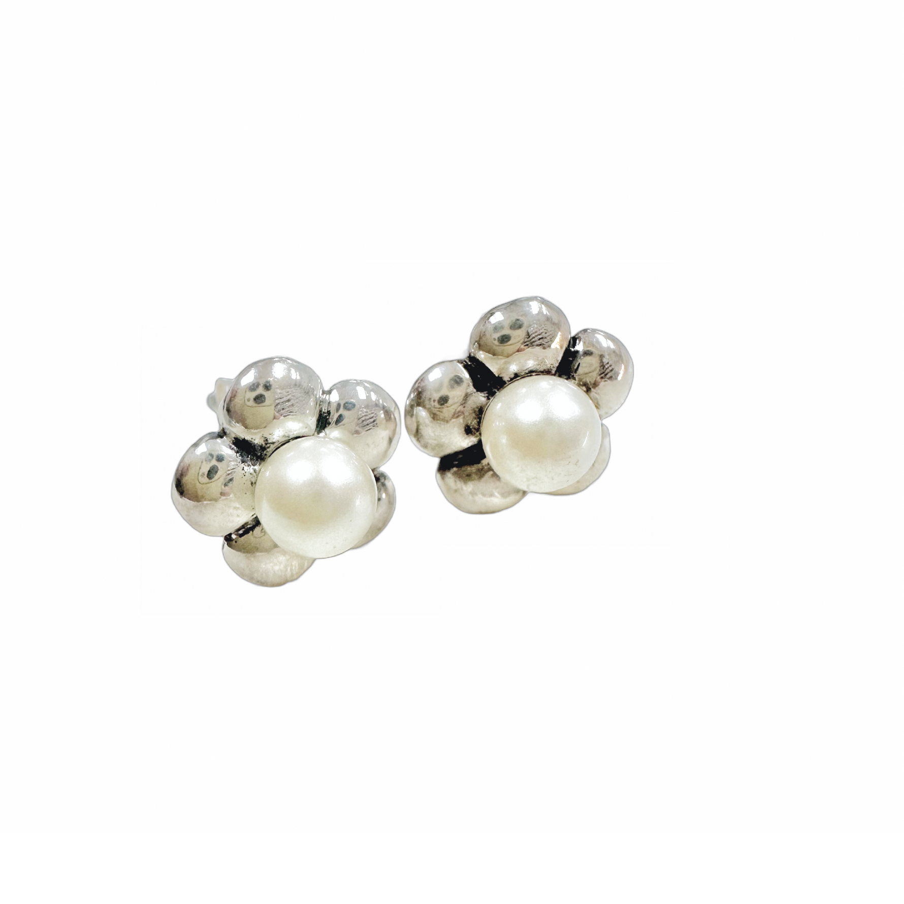 Flower power pearl stud earrings. Made of .925 sterling silver. Stud earring, for pierced ears. Features beautiful freshwater cultured pearl 8mm on 925 silver post. Ideal for the office or everyday earrings.