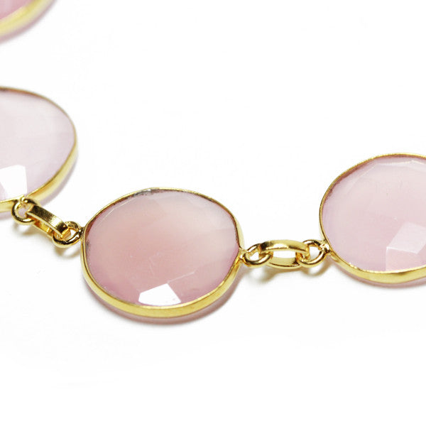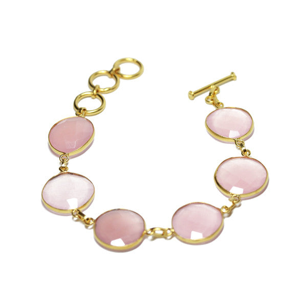Pretty in pink rose quartz stone bracelet. made of sterling silver, plated in gold.
