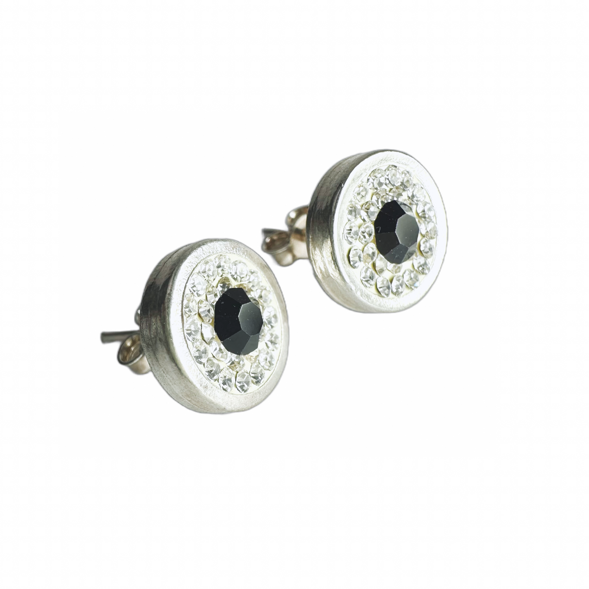 Rhinestone crystal stud earrings. Made .925 sterling silver with crystal encrusted accent and black crystal at center. A stylish look.