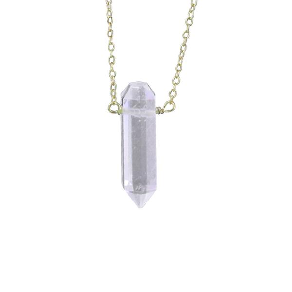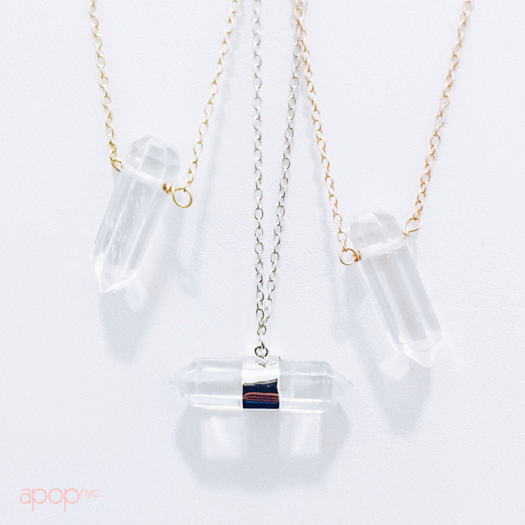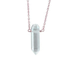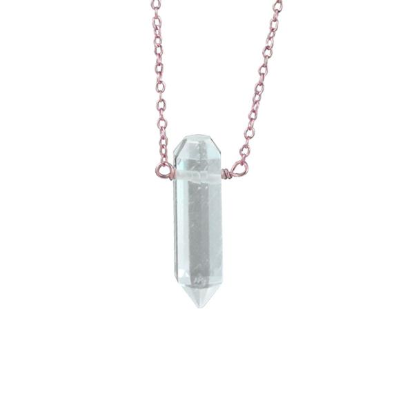 Crystal chakra style spike pendant on a cute rosy chain. fMade of .925 sterling silver chain plated in rose gold. Featuring a dimensional acrylic spike at center. Spring ring clasp. Shop it now, only@apop!
