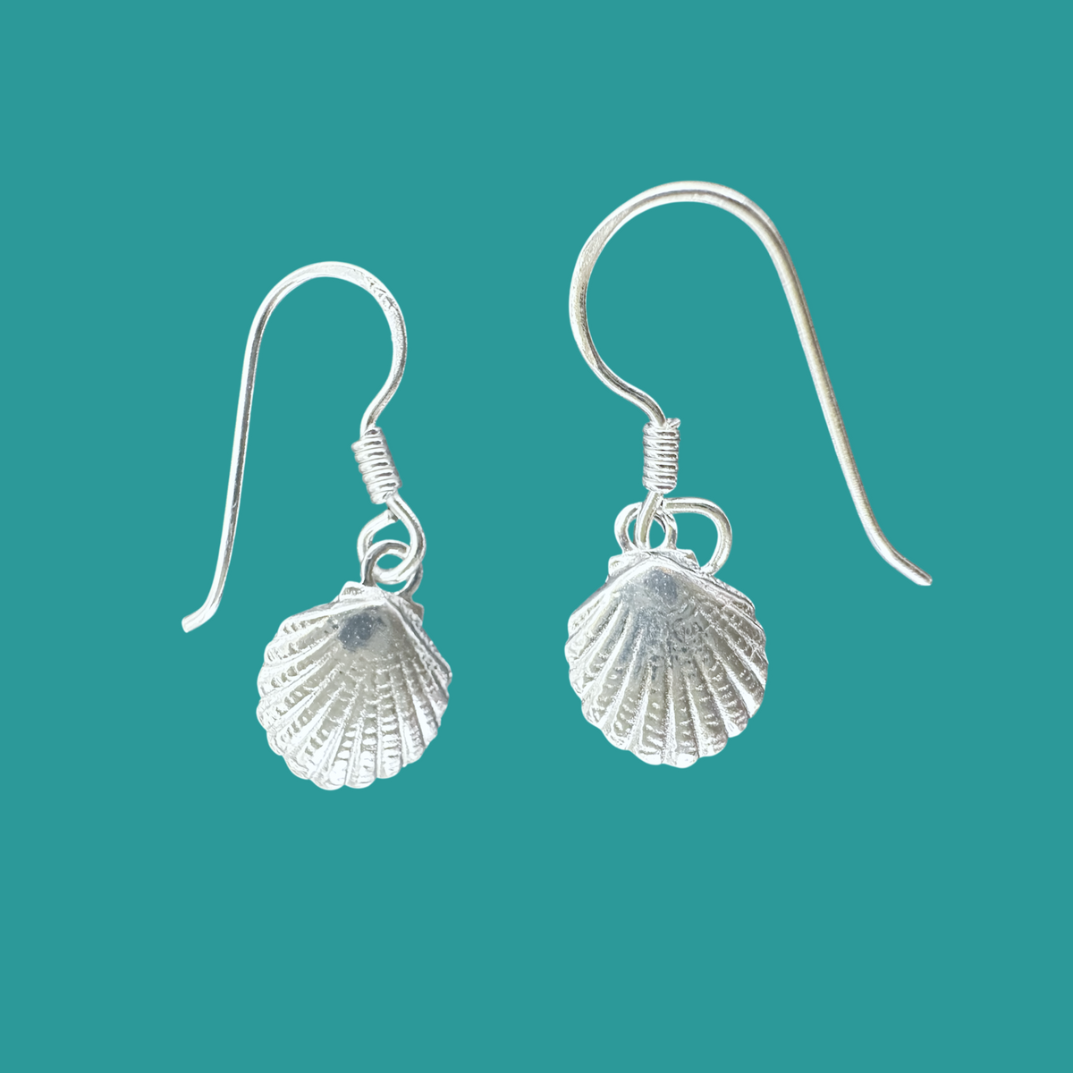 Small beach sea shell earrings, made of .925 sterling silver. shell drop earrings. Delicate nautical beach design.