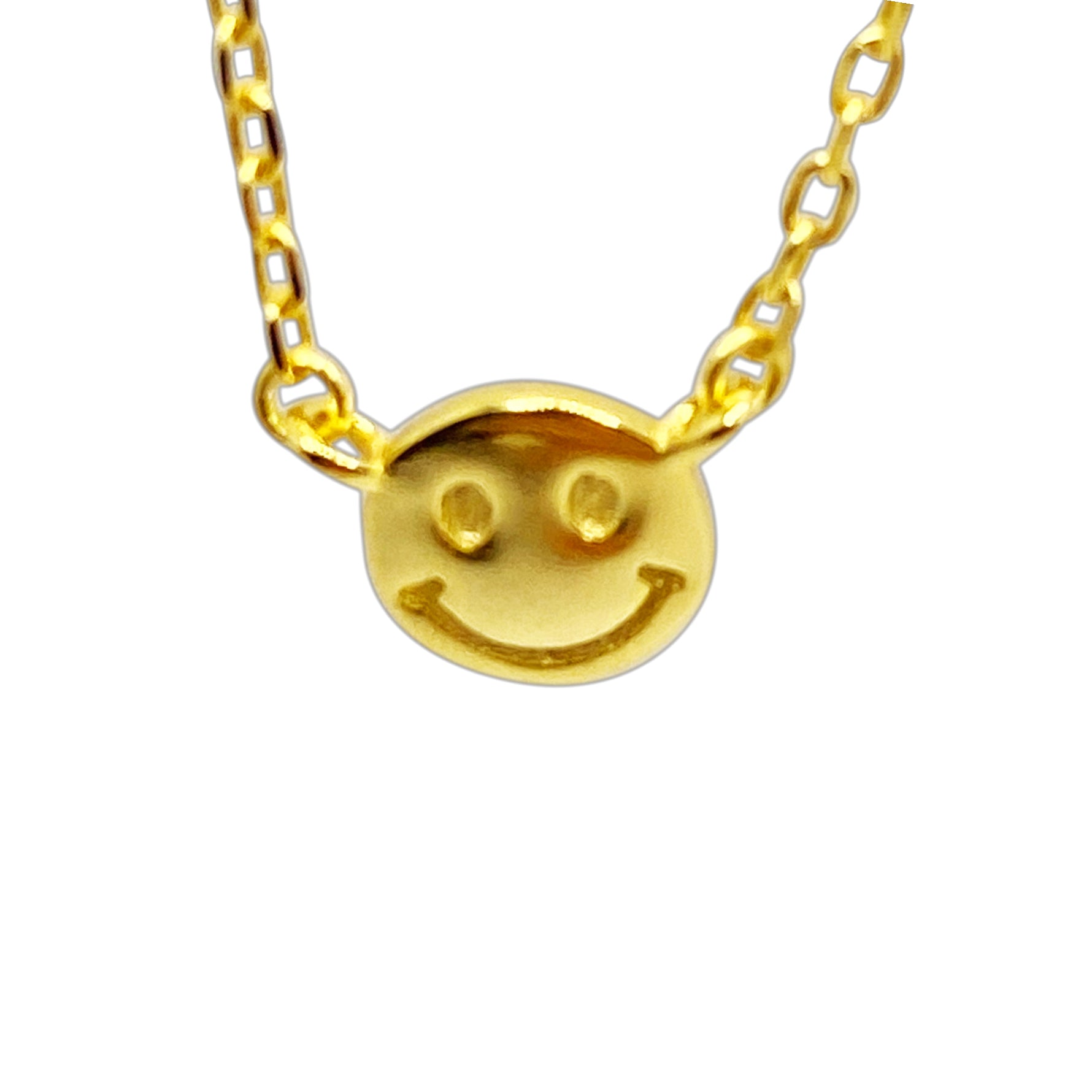 Smiley face necklace, An adorable little rolling happy face pendant on a chain. Made of .925 sterling silver. Features a round disc with happy face details. Spring ring clasp. Cute everyday necklace for everybody! 16 inch + 2 inch extender