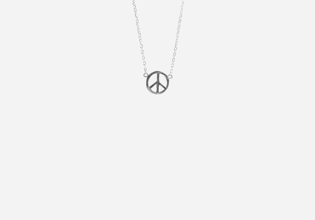 Unit price / perMade of .925 sterling silver. Silver link chain features a mini peace charm. Peace Charm; .40 inch diameter. Necklace Length Sizing Guide
