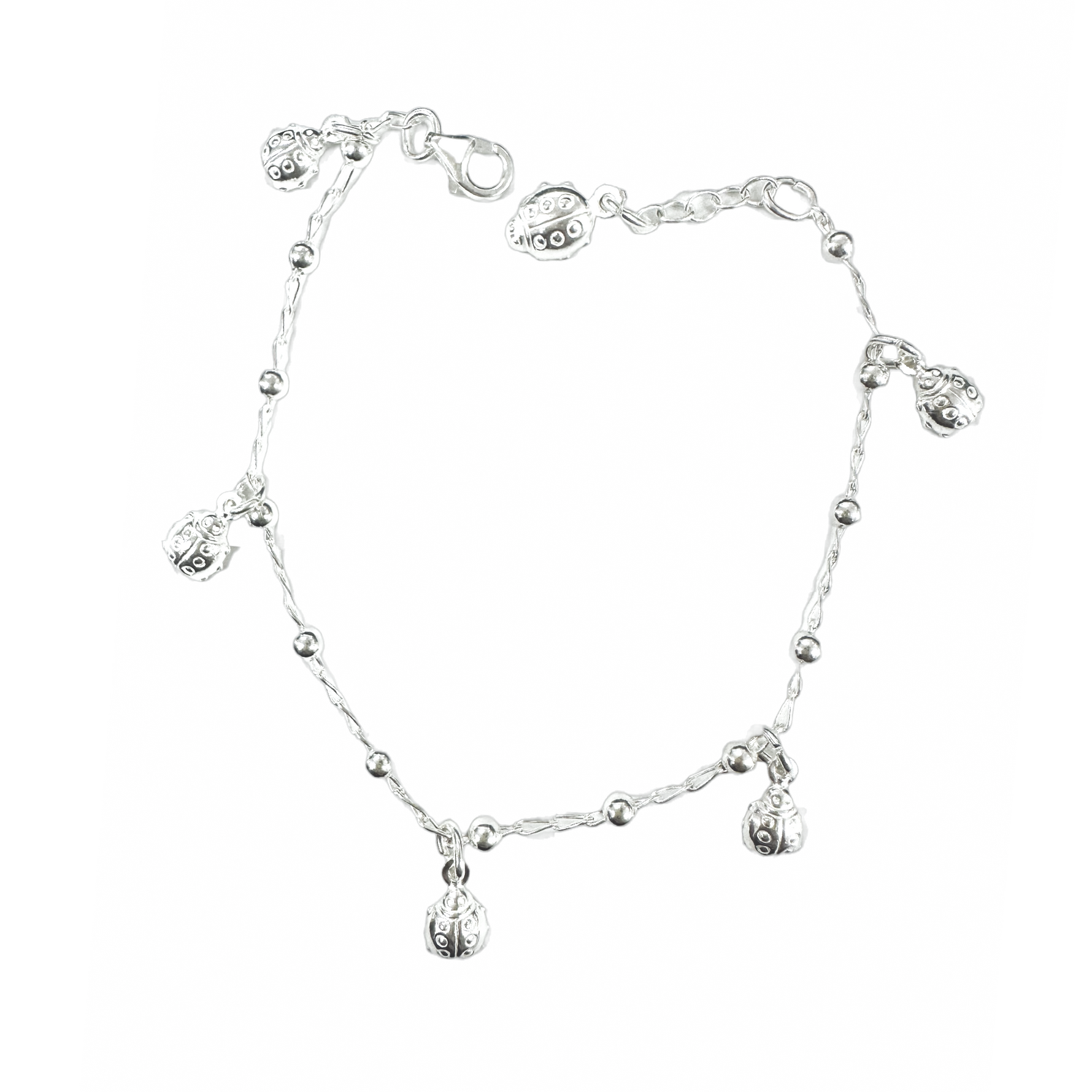 Unit price / perWear a little bit of luck everyday with this adorable ladybug charm bracelet. Made of .925 sterling silver and enamel finish.. Featuring a small enamel ladybug in black and red at center of bracelet. Cute Ladybug clasp. 7 inch
