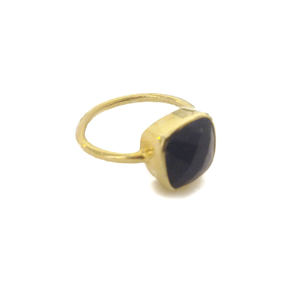 Said to signify the heavens, this dreamy royal blue lapis ring is considered a powerful, healing stone. Ring band and setting made of .925 sterling silver and dipped in yellow gold. Polished finish. Featuring an outstanding royal blue natural lapis lazuli gemstone at center. Square, faceted stone in bezel setting. Wear with our oval moonstone ring for a layered look that will be a conversation starter.