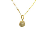 sparkly square pendant necklace. Made of .925 sterling silver, dipped in gold Accented with small cubic zironia. just the perfect oppulent shine