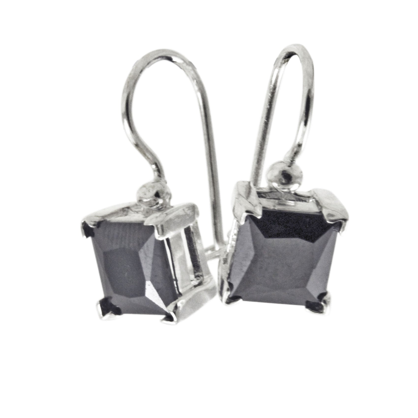 Unit price / perPretty black drop earrings! Princess-cut black stones set in basket setting. Square setting is unique elegance. Drop earrings setting made of .925 sterling silver. Polished finish, post earrings. Pair with a black jewelry for an ultra fabulous and complementing look.