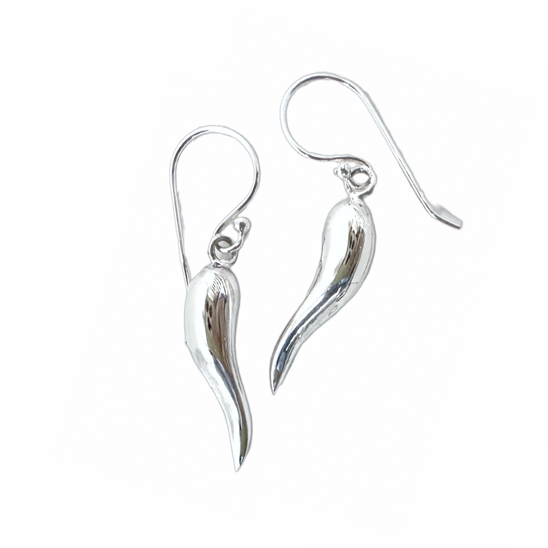 mini italian horn drop earrings, Made of .925 sterling silver. mini horn charms.