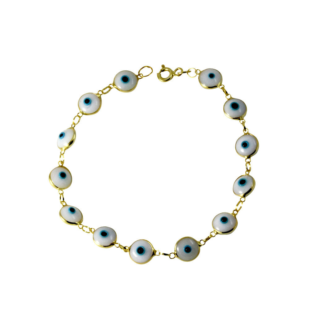 fancy gold plated eye bracelet, Made of .925 sterling silver, plated in gold. Spring Ring. Bright white blue eyes, ward off the evil eye with this cute gold eye bracelet. . Round eyes Motif,approx 8mm