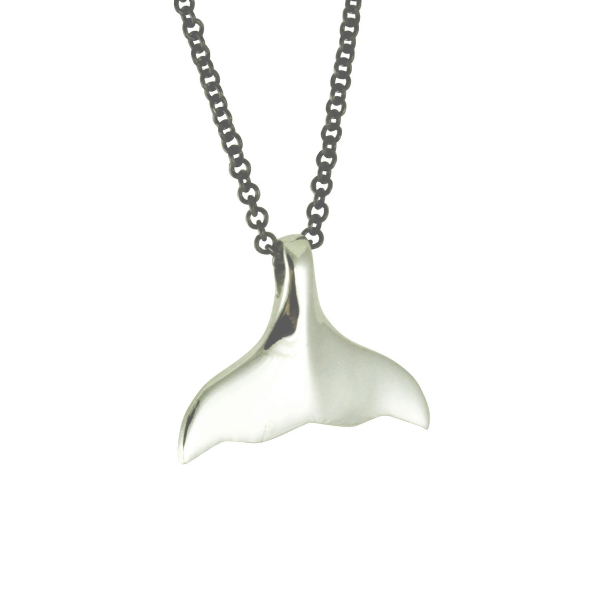 Sterling Whale necklace, Strength defines a whale. Wear a bit of stylish amulet with this simple yet meaningful Whale Tail Pendant necklace. Made of .925 sterling silver. Featuring a small Whale Tail pendant with a sculpted whale's tail. Wear alone or layer. Choose your chain style, displayed in mixed metal style with blackened silver chain.