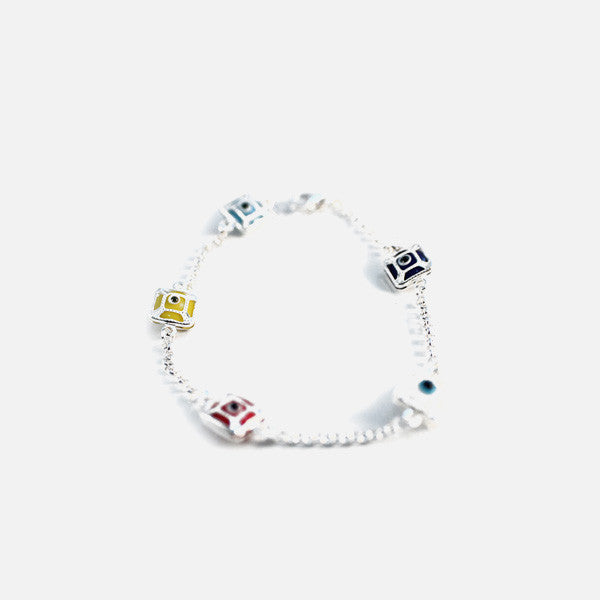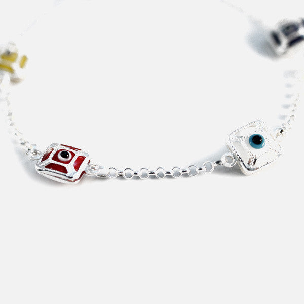 Made of .925 sterling silver. Lobster Claw. Colorful Charms, ward off the evil eye. Square Motif, .25 inch x .25 inch