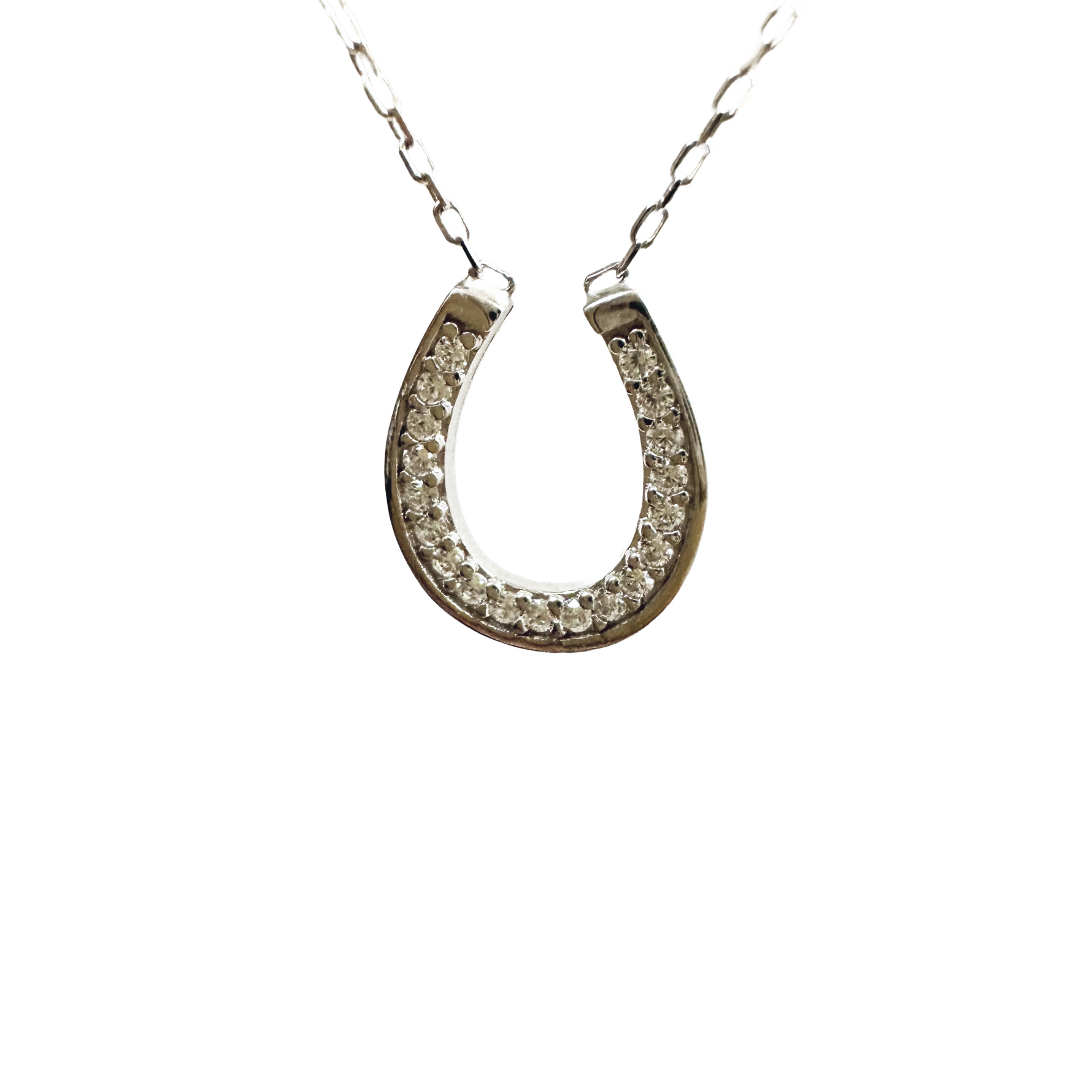 Sterling Silver "Lucky" Horseshoe Pendant Necklace with Stones 16-17 inch