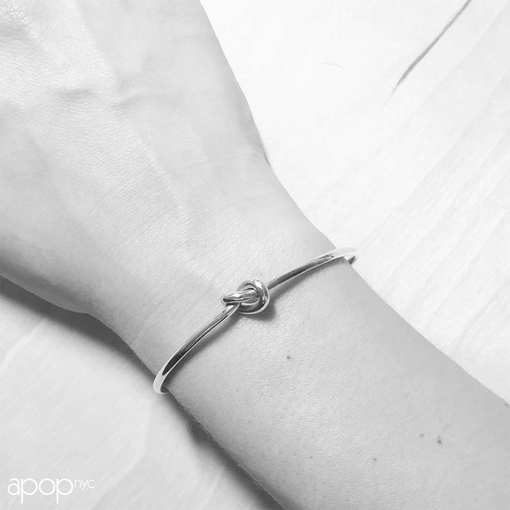 Price / peradjustable bangle bracelet, Made of Sterling Silver. knot motif at center. great for stacking. Adjustable.
