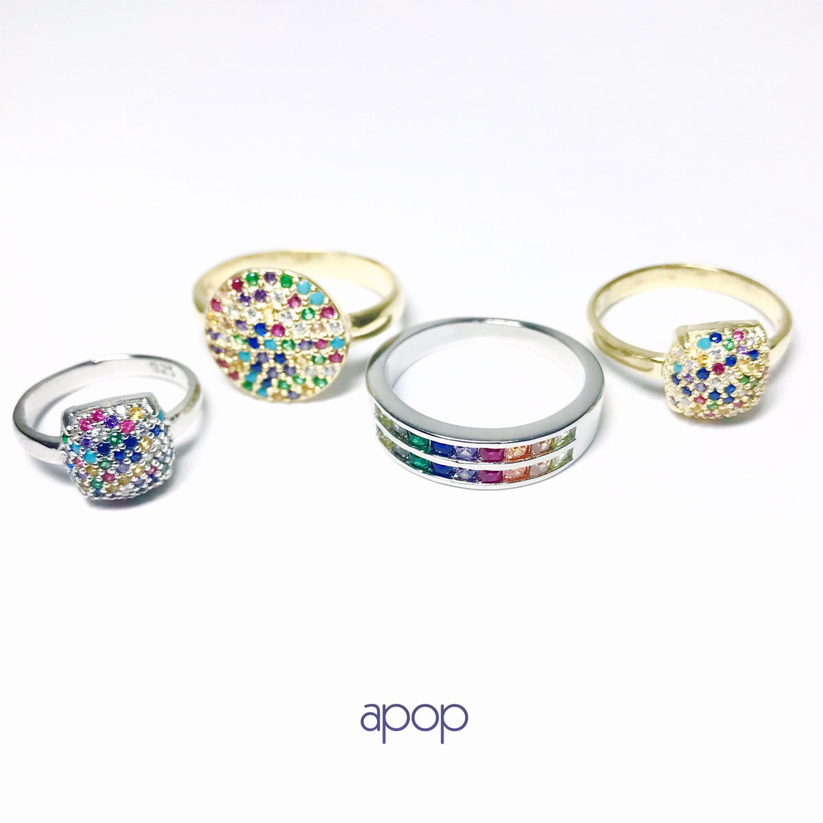 Price / perSo vibrant! Rainbow color cubic zirconia ring. Made of .925 sterling silver and princess cut cubic zirconiua. Polished finish. Features a perfect multicolor cubic zirconia accent at center with a shine effect. Looks great with multicolor jewelry. Unisex.