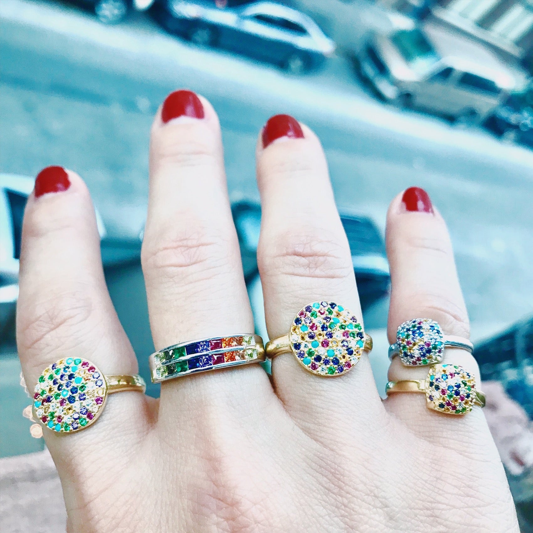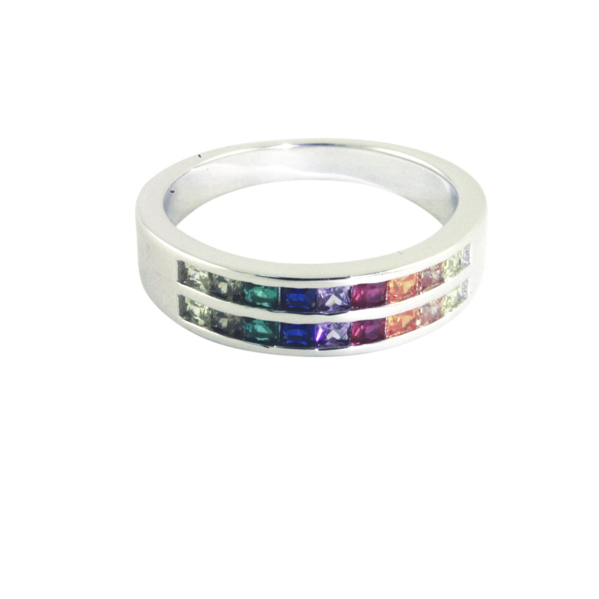 Sterling Silver Multicolor Rainbow CZ Band Ring