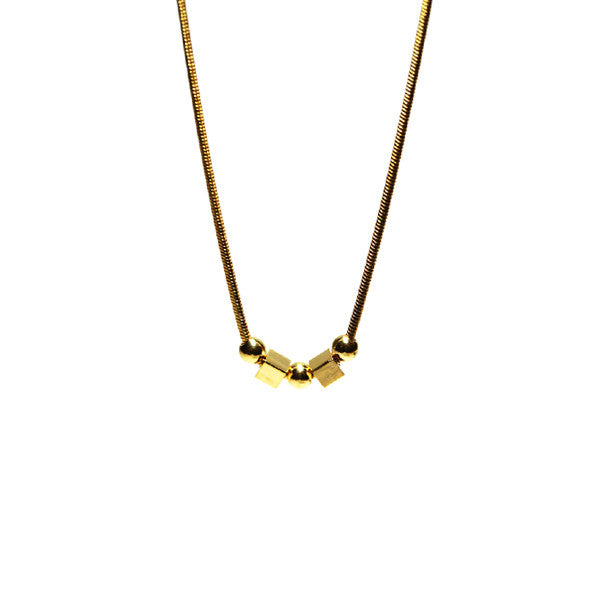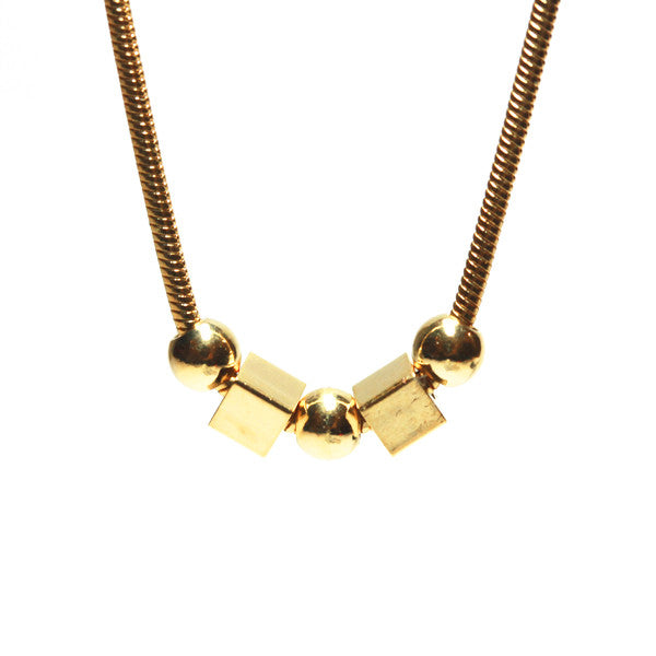 Gold Fill Bead Charm Geometric Pendant Necklace