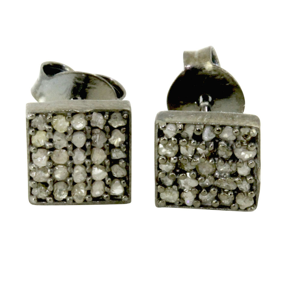 Stunning and luxurious square pave diamond stud earrings. Made of .925 sterling silver, dipped in black rhodium for a unique dark finish and accented with small diamonds. An array of small diamond stones give these earrings an unforgettable sparkle. Push back closure. Post earrings lay flat on earlobe. Unisex. Shop Today and Save!