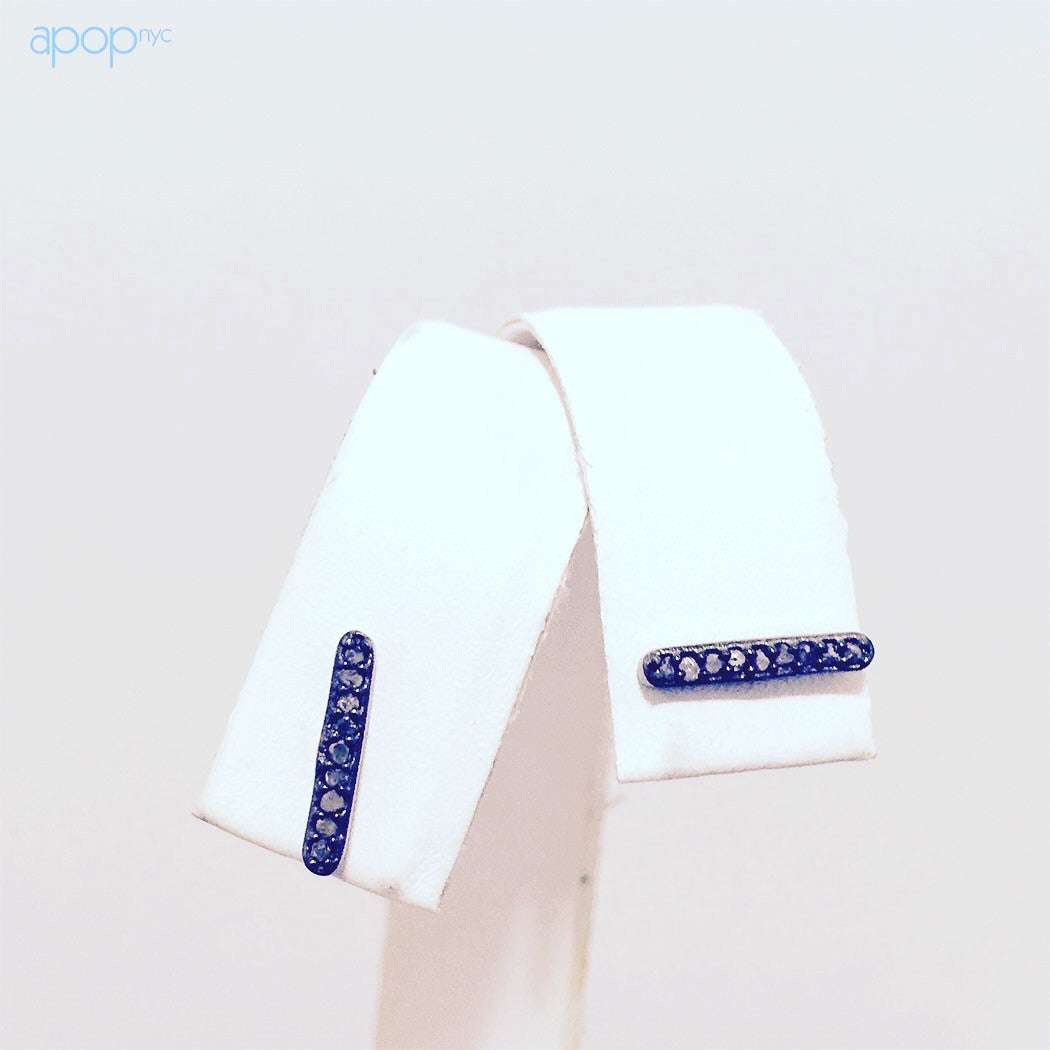 "Dazzle" Blackened Silver Diamond Bar Stud Earrings