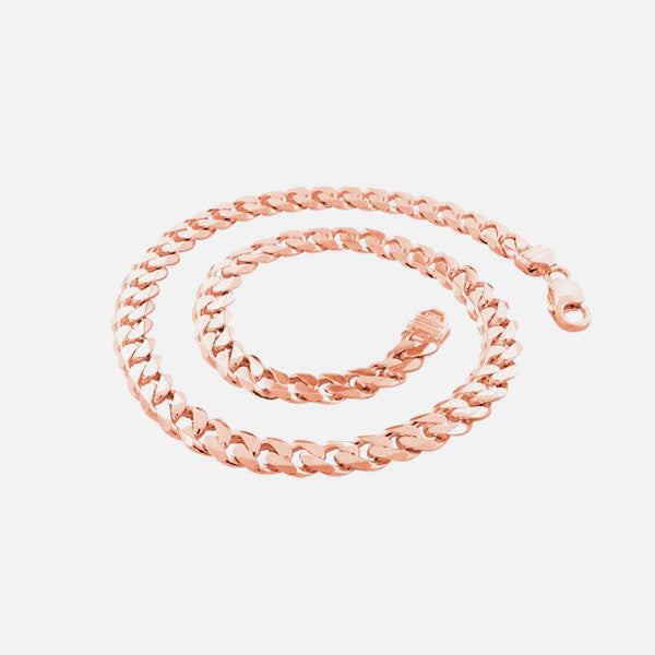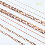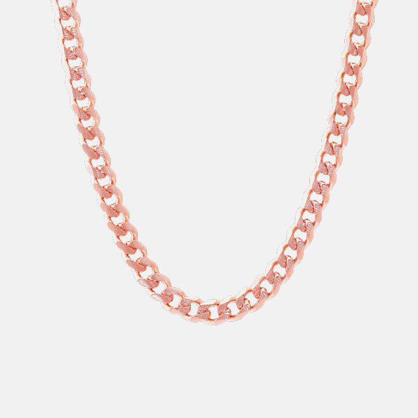 Our "Curb Couture" rose gold curb chain necklace is the ultimate fashion necessity. Made of .925 sterling silver and dipped in stunning rose gold. A unisex necklace. Lobster claw clasp for a secure fit. Rose gold curb links are lightweight for comfortable wear. Great for layering with multiple rose gold chain necklaces. Also looks beautiful as a single statement piece. Italy.