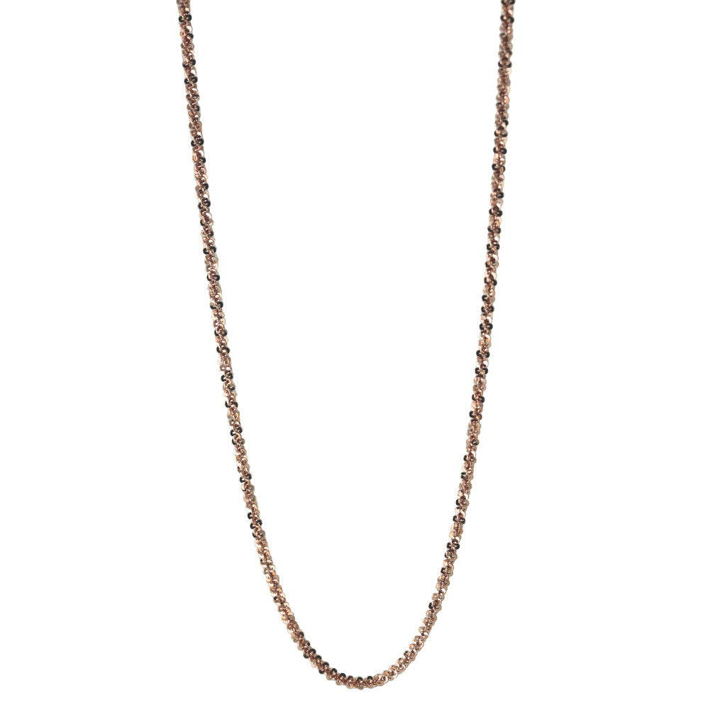 Introducing this chic rose gold chain to Apop's Rosy Collection. Made of .925 sterling silver. Plated in Rose Gold. Twist chain gives sparkle at every angle, think of it as a single strand sequin necklace. Great for layering Picture is magnified for detail.