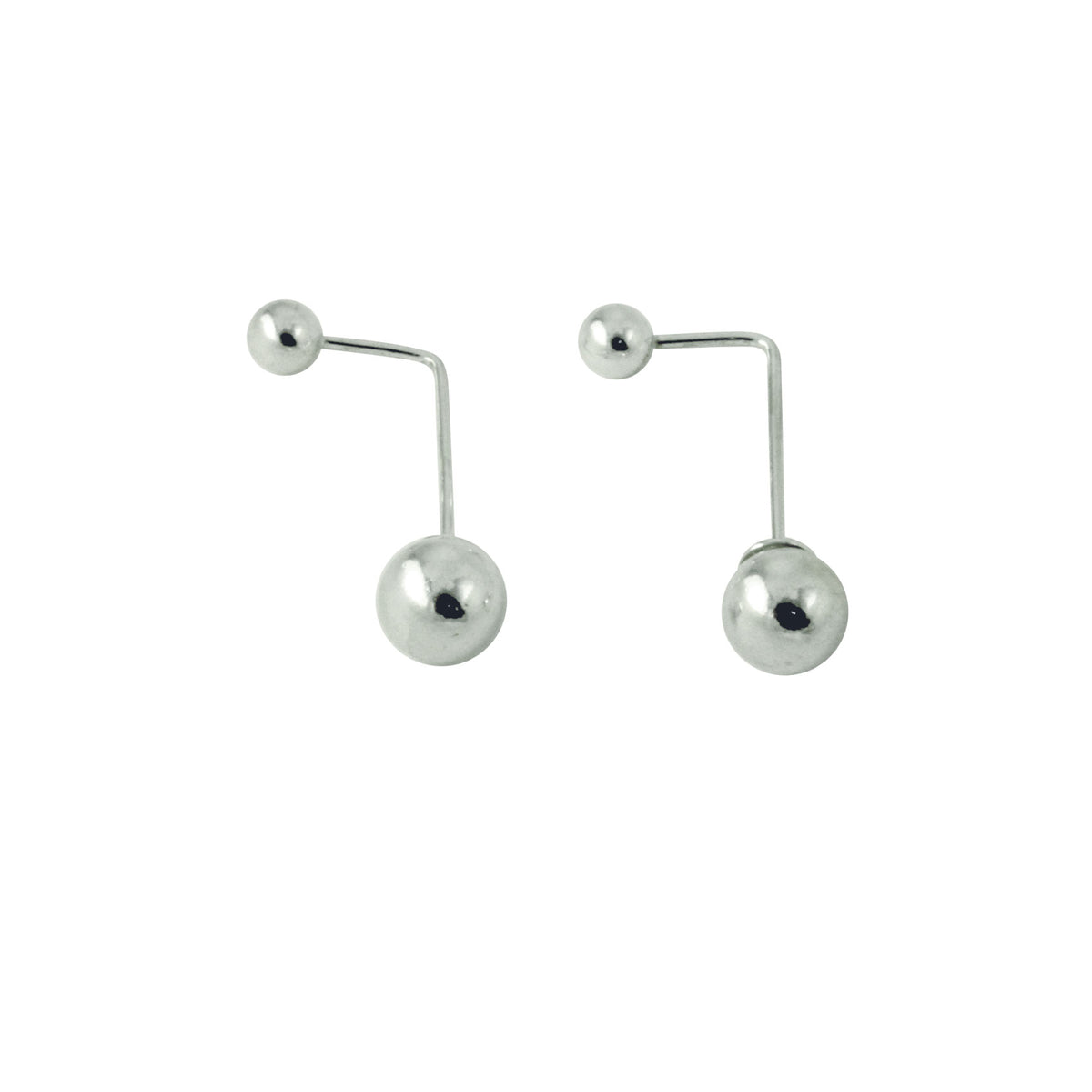 edgy classic silver bar and bead earrings, a modern pair of reversible earrings, made of sterling silver post with sterling silver beads, complete 925 sterling silver. Earring may be reversed, bigger bead on the front and smaller on the back. these reversible earrings are a wardrobe style. Ideal for the office as they are not bulky like other double sided tribal earrings. although these daring double bead earrings seem to carry weight, they are soft on the earlobes. Simple yet fabulous.