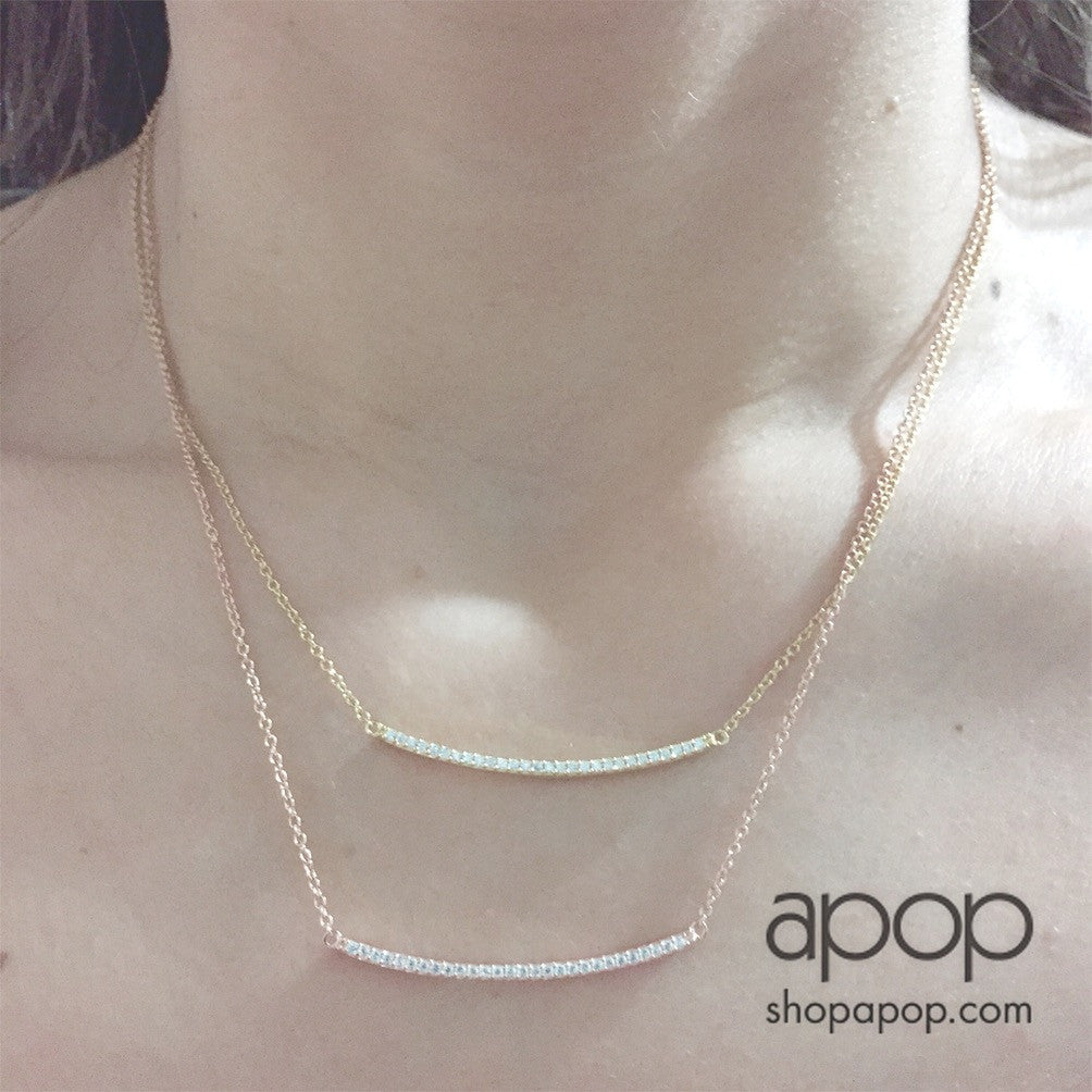 "Sparkle Bar" CZ Bar Pendant Necklace Sterling Silver