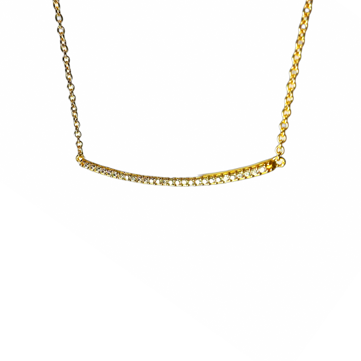 Our "Sparkle Bar" necklace is an ultra chic season staple. Made of .925 sterling silver and dipped in rose gold. Featuring a simple thin gold plated vertical bar pendant at center of necklace. Bar pendant glows with a stunning array of cubic zirconia stones. Rolo chain with spring ring clasp. Looks fashionable and glamorous when layered or alone. .
