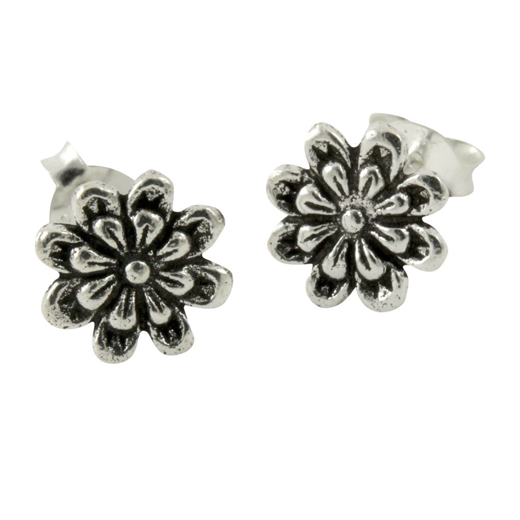 daisy stud earrings Made of Sterling Silver. intricate style. 8mm. Flower Stud earrings.
