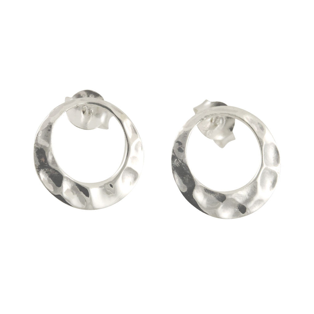 "Oh" Hammered Sterling Open Circle Earrings