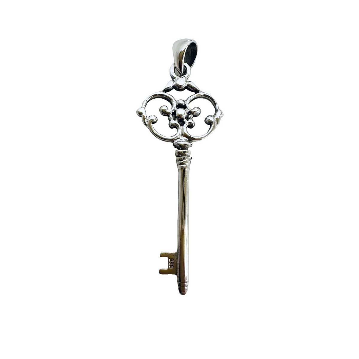 Unit price / perclassic silver key pendant is made of solid .925 sterling silver. Italy. Polished finish. Pendant Only shown, may be purchased with beaded chain.