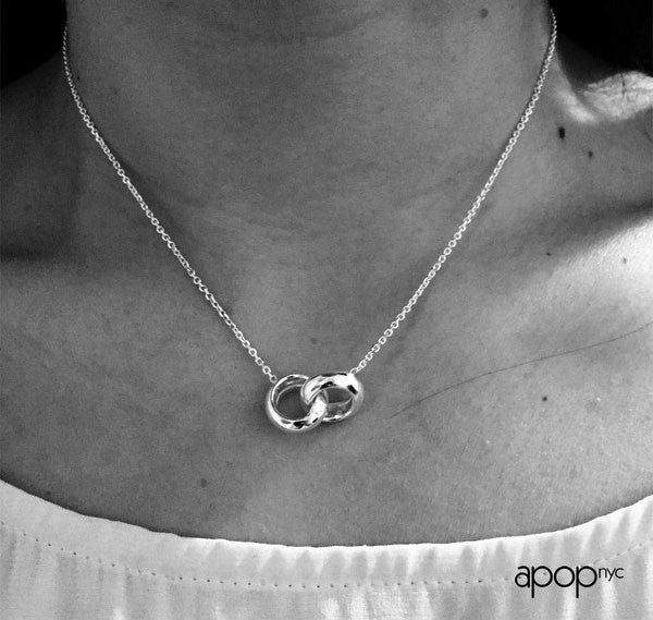 "Love Lock" Sterling Silver Interlocking Rings Pendant Necklace
