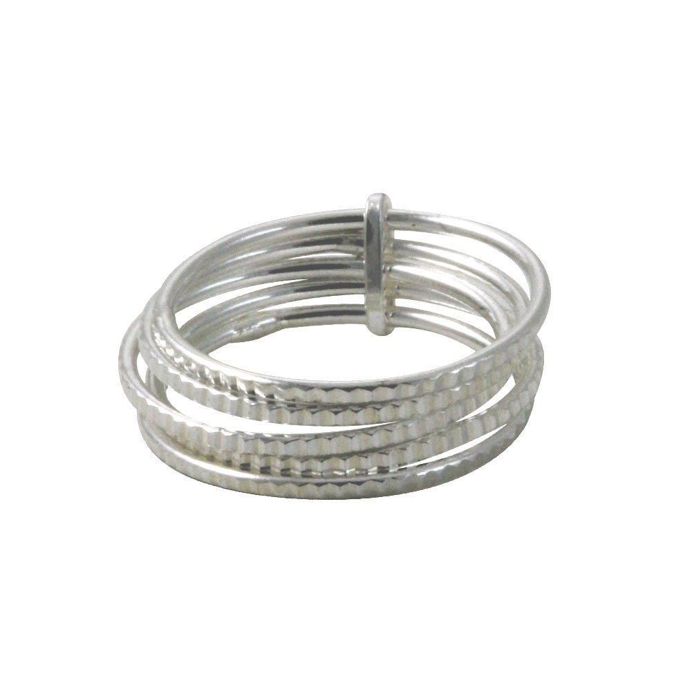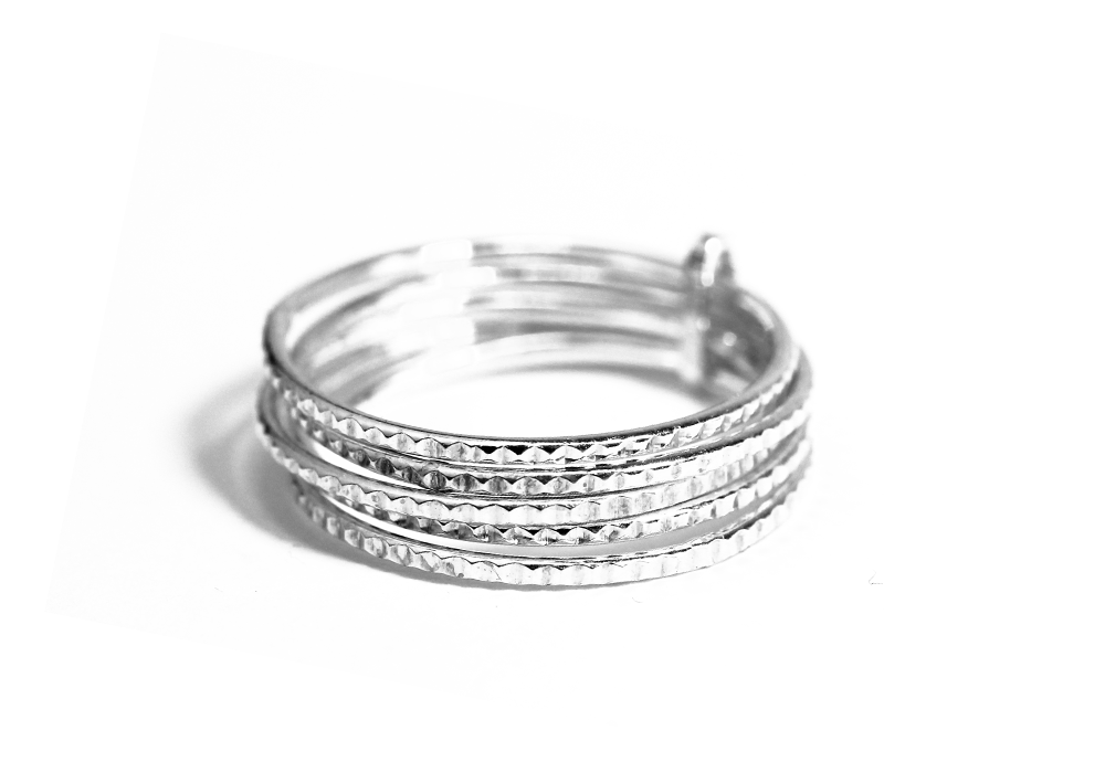 stacking rings for ages! sterling silver thin band ring set of 5 is made of solid .925 sterling silver  featuring five Thin Band Ring 1.5mm. Polished finish with a studded / edged design.   Ring Sizing Guide