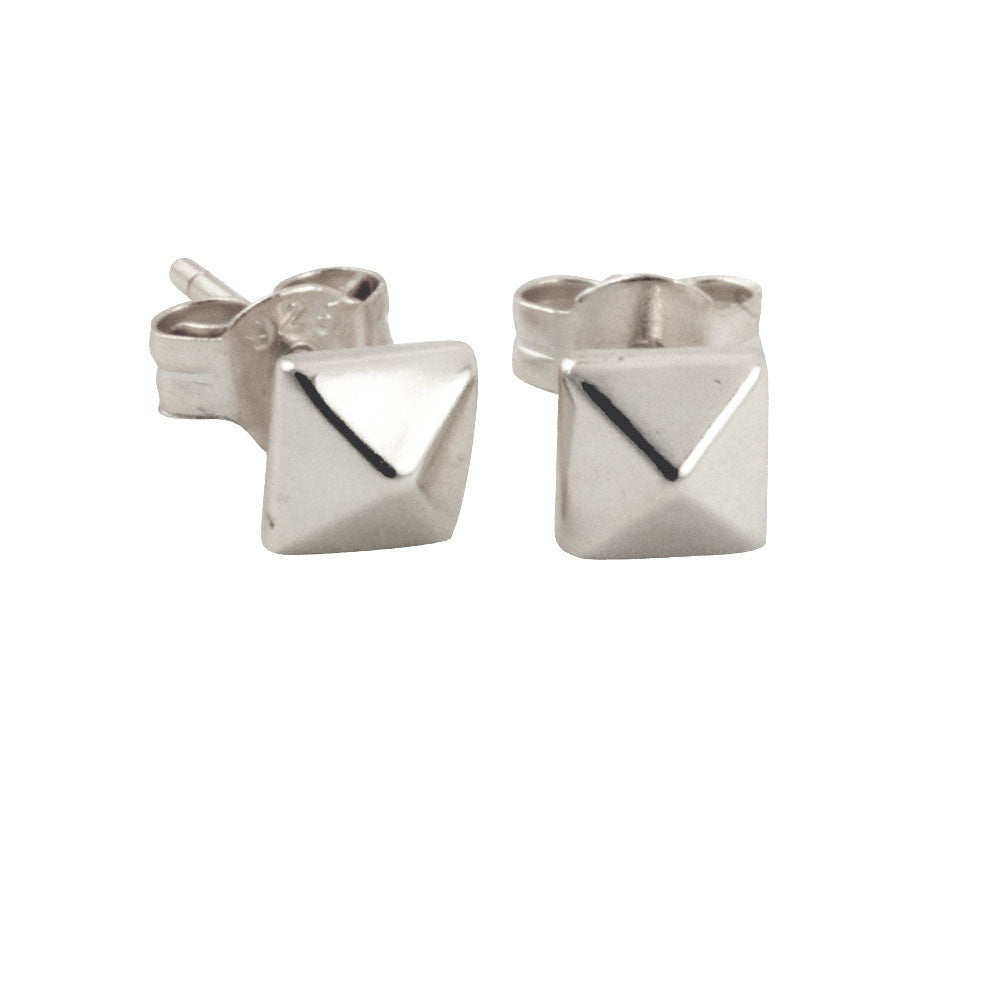 "Tiny" Sterling Silver Pyramid Square Stud Earrings Mini