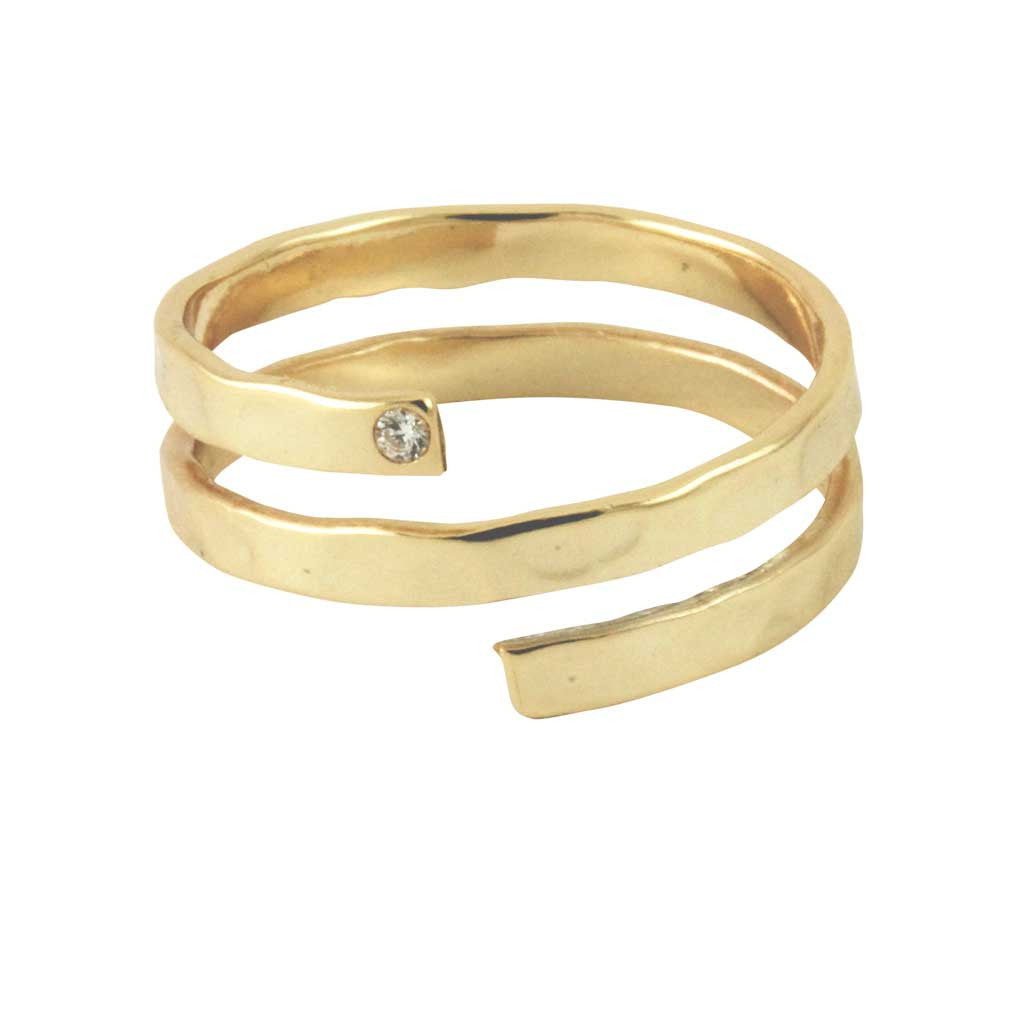 CZ Bypass open ring. Made of sterling silver, goldtone finish, hammered finish. Small cz accent.