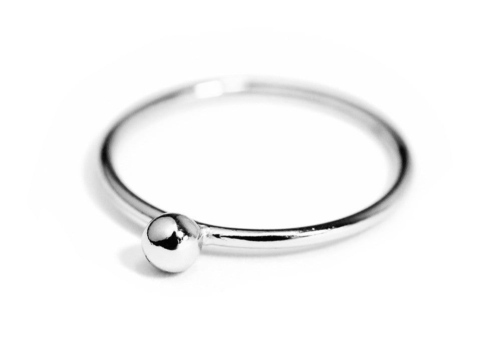 silver dotty thin band ring is made of solid .925 sterling silver.Thin Band Ring 1.5mm featuring a tiny bead at center, great for stacking with turquoise ring or apop mini pearl ring. polished finish.
