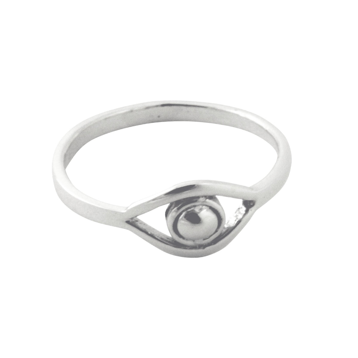 simple silver eye ring is made of solid .925 sterling silver. eye outline Featuring a simple band with an open eye at center. Polished finish.