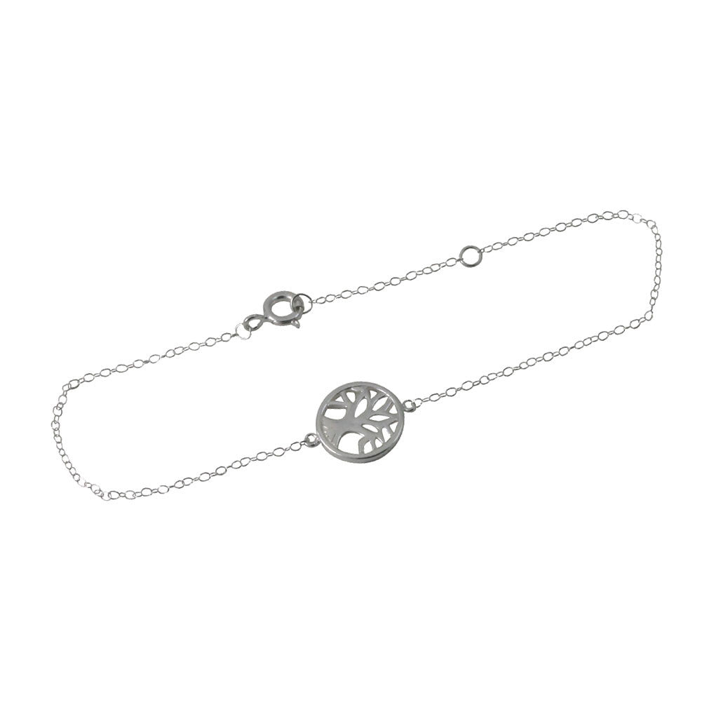 Simple and beautiful silver tree of life bracelet. Made of .925 sterling silver. Features a classic silver round disc charm with an etched tree of life symbol at center. Dainty rolo chain with spring ring clasp for a secure fit. Looks great on it's own or paired with a tree of life necklace.