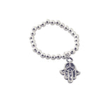 Sterling Silver Beaded Stretch Ring with Hamsa Charm