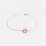 Our Star of David bracelet is the perfect symbol of faith. Made of .925 sterling silver and dipped in beautiful rose gold. Features a classic rose gold plated Star of David at center. Polished finish. Lobster claw clasp. Looks elegant paired with a rose gold mini solitaire stone bracelet.