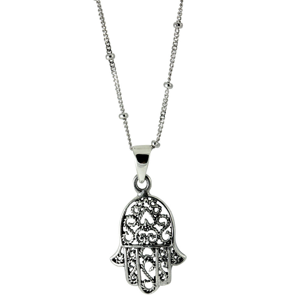 Sterling Silver Filigree Hamsa Pendant Necklace