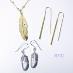 apop Exclusives, beautiful intricate gold feather. Made of .925 sterling silver. Plated in Yellow Gold. Large feather pendant with corresponding necklace chain. Choose your favorite length, shop@apop!