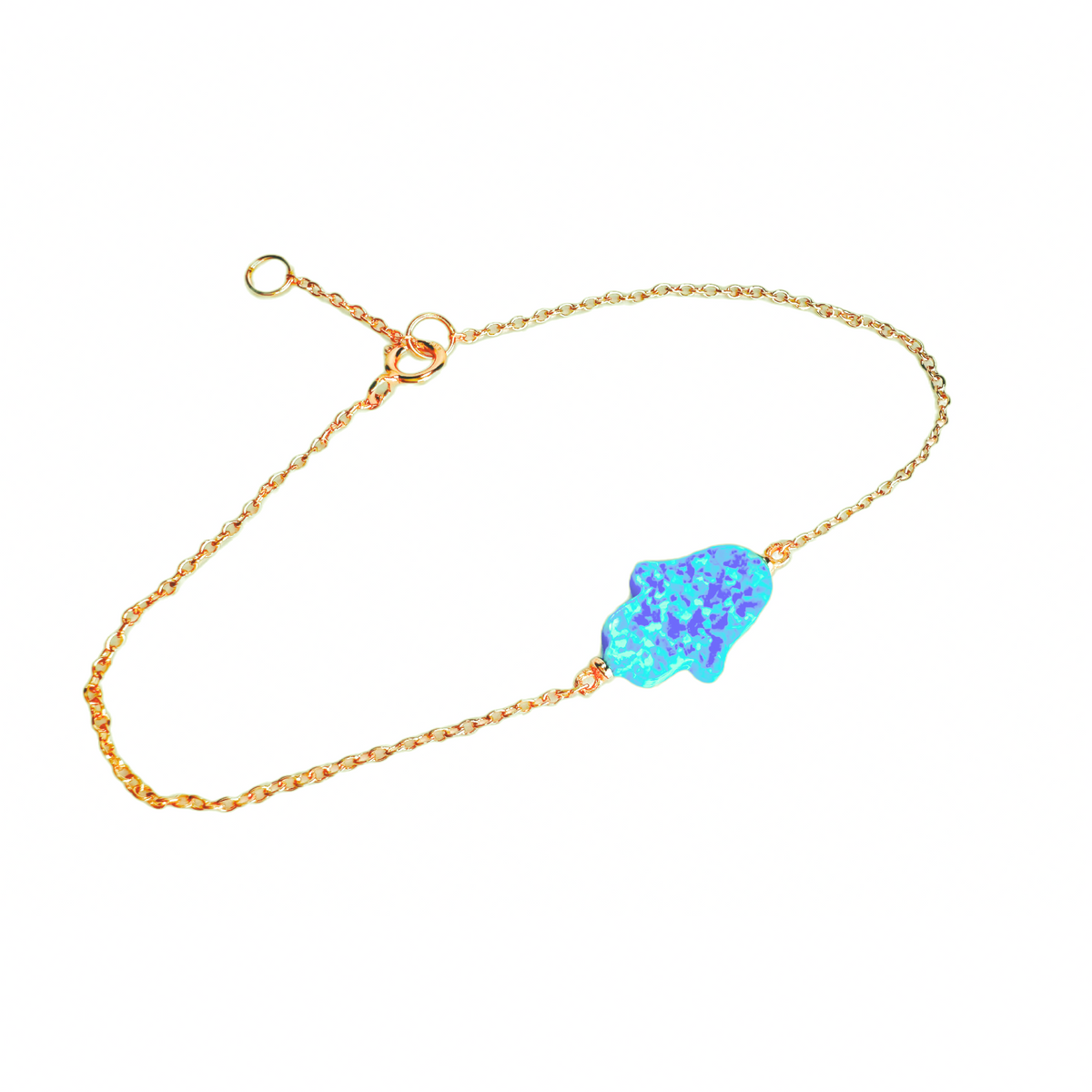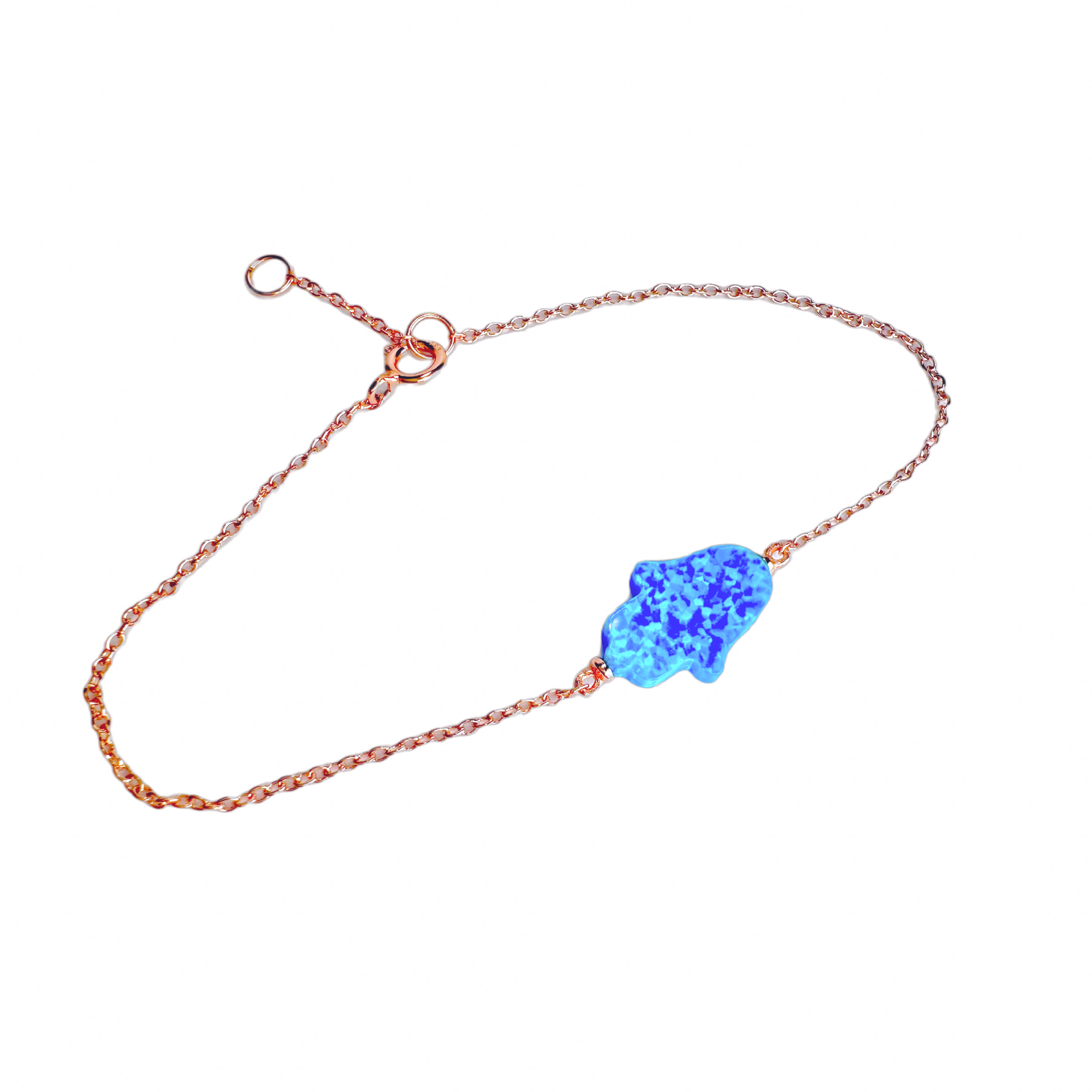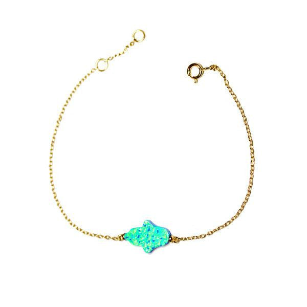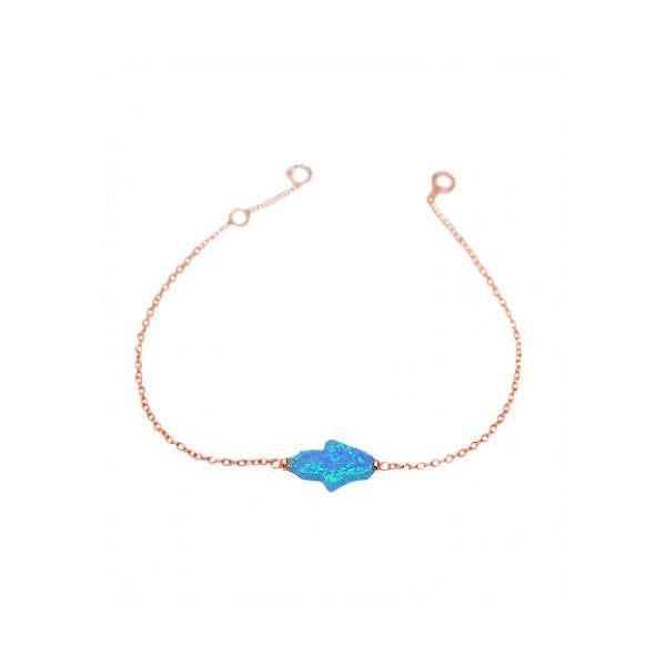 Sterling Blue Opal Hamsa Bracelet 7 inch